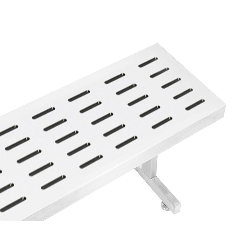 Benchpro Slotted Electropolished Gowning Bench with Square Edge - Recessed Legs 1/2" x 3" Slots