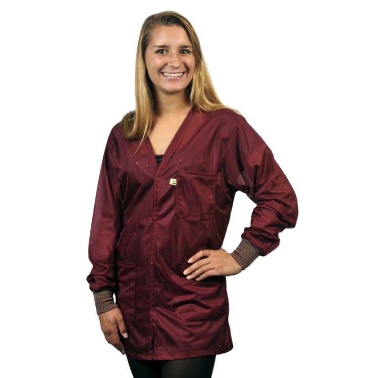 Ultimately, this hip-length coat delivers superior protection and comfort. Because the fabric is lightweight, it minimizes fatigue during demanding tasks. As a result, the Tech Wear V-Neck Burgundy Lightweight Hip-Length ESD Jacket represents a smart investment for any facility. Therefore, your team stays safe and professional in every workstation.