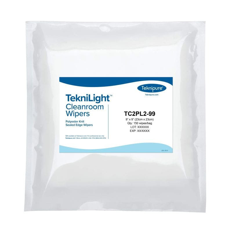Teknipure TekniLight Polyester Knit Sealed Edge Cleanroom Wipes are made with a hi strength continuous filament polyester yarn in a double knit, no run interlock pattern. Knitting, pre-washing, cutting, sealing, washing and packaging are all done in house for optimum control & cleanliness. All edges are laser sealed for ultra-low fiber and particle retention. The fabric is ultra clean and highly sorbent making it ideal for wiping critical surfaces. All Tekniclean wipes utilize Statistical Process Control in manufacturing and are lot traceable from raw material to finished product. Class 10 Laundered & Packaged.