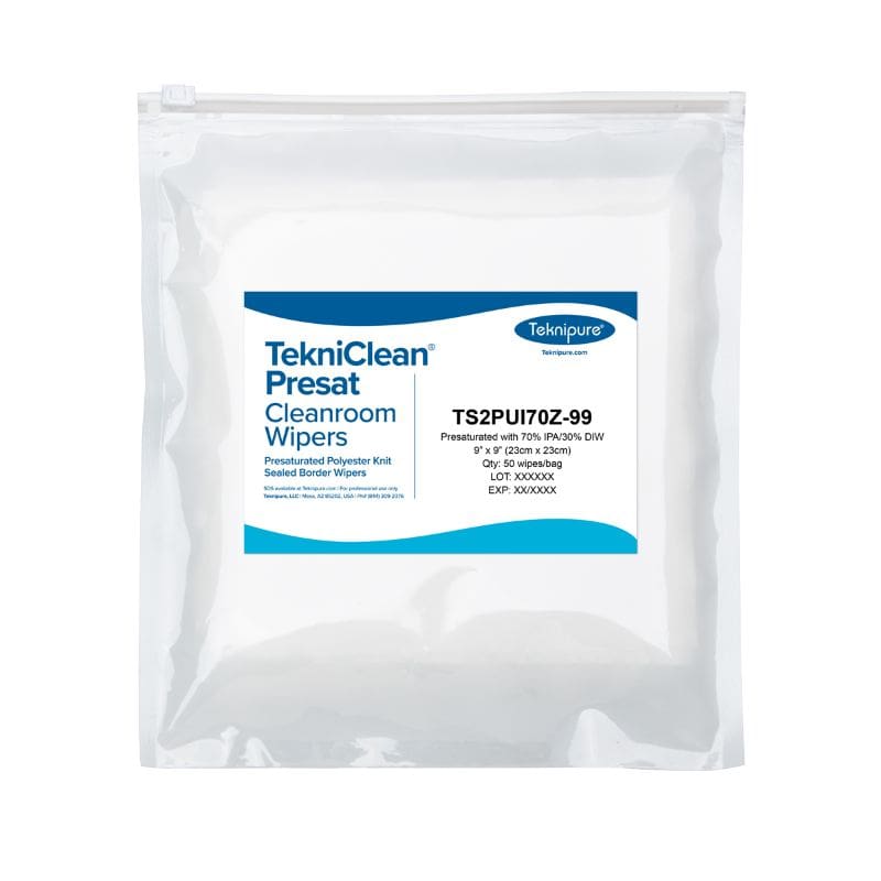 Teknipure TekniClean Presat Polyester Sealed Edge Cleanroom Wipes 70%IPA Slider Bag provide ultra-clean performance for critical environments. These knit wipes utilize a high-quality polyester material for effective surface cleaning. Specifically, the sealed edges minimize fiber release and prevent contamination. This design ensures superior strength and durability during precision cleaning tasks.